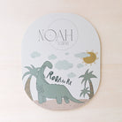 Découvrez ce panneau Dino. Avec une illustration imaginée par Les Mignonneries, il est à personnaliser avec le prénom de votre enfant. En plexi, il est coupé et imprimé dans notre atelier.