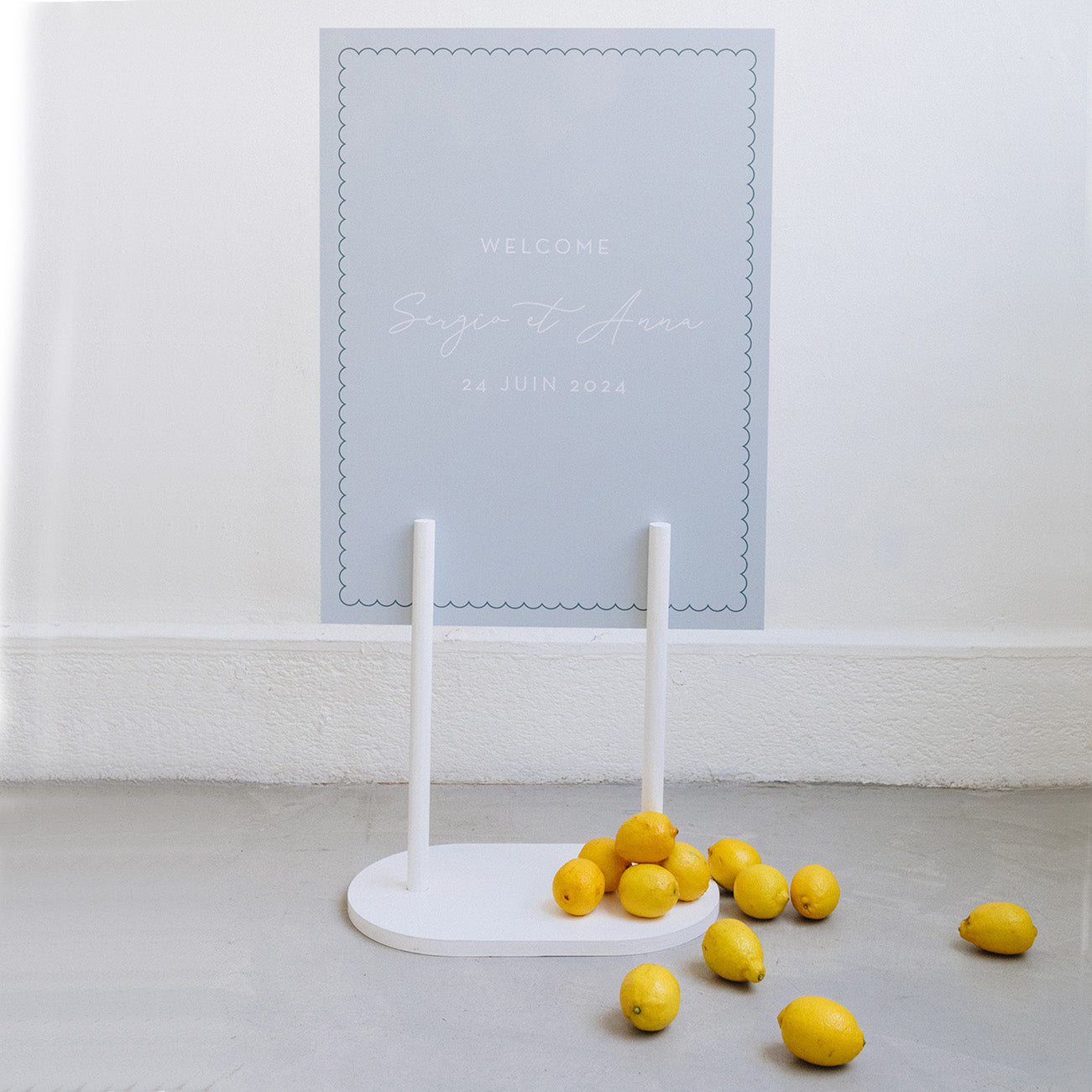 Découvrez notre panneau d'accueil "Napoli". Imaginé par les Mignonneries, et à personnaliser avec vos prénoms et la date de votre mariage, il est entièrement créé dans notre atelier.