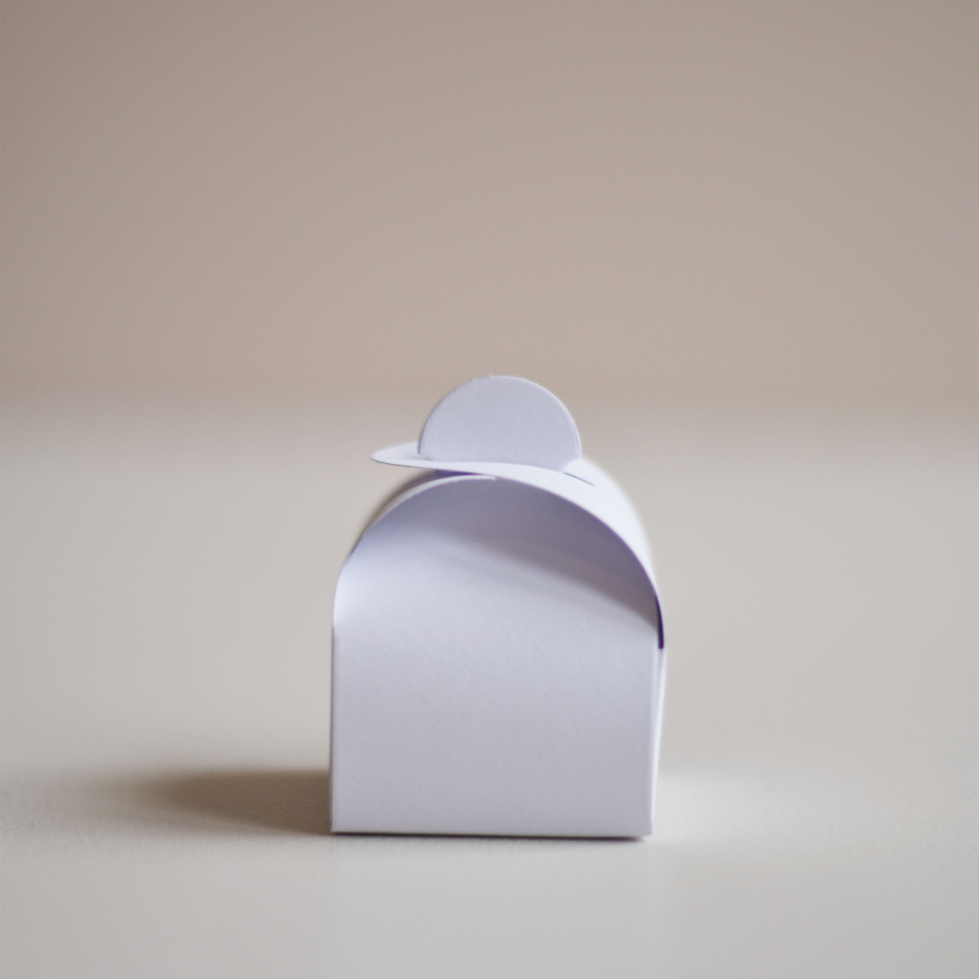 Petite boîte arrondie blanche, proposée par les Mignonneries et à personnaliser avec nos étiquettes personnalisées.