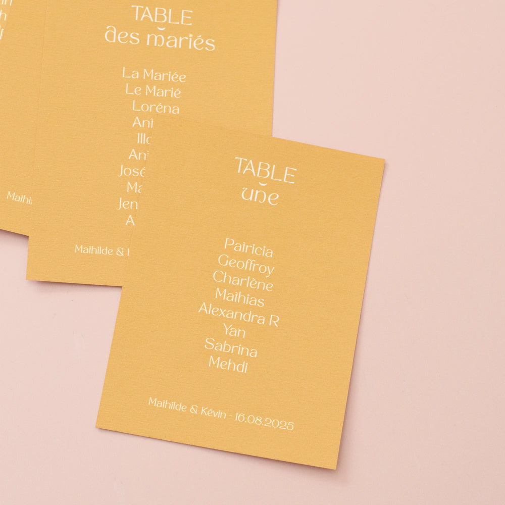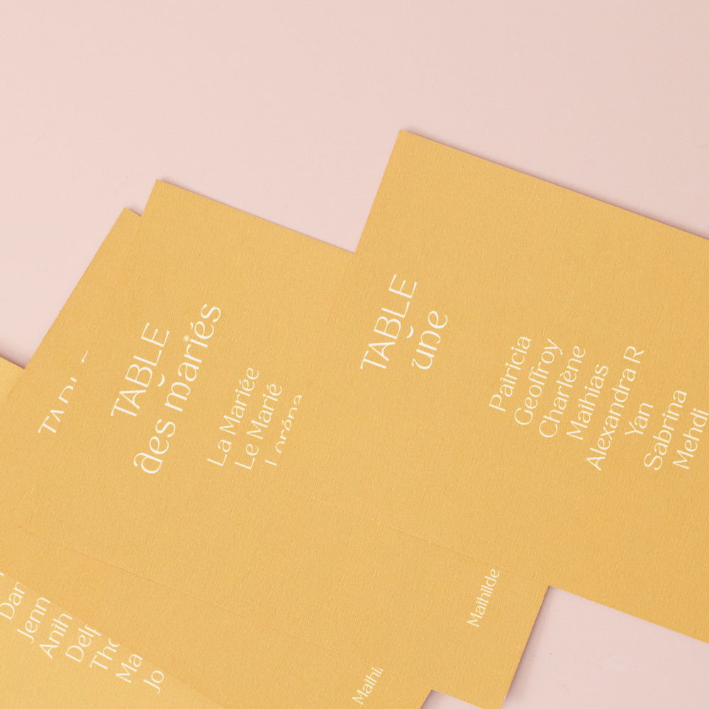 Ils sont à personnaliser avec vos table et noms d'invités et disponibles dans une sélection de coloris. Un produit signé Les Mignonneries, fabriqués en papier texturé 320g/m2, découpés et imprimé dans notre atelier.