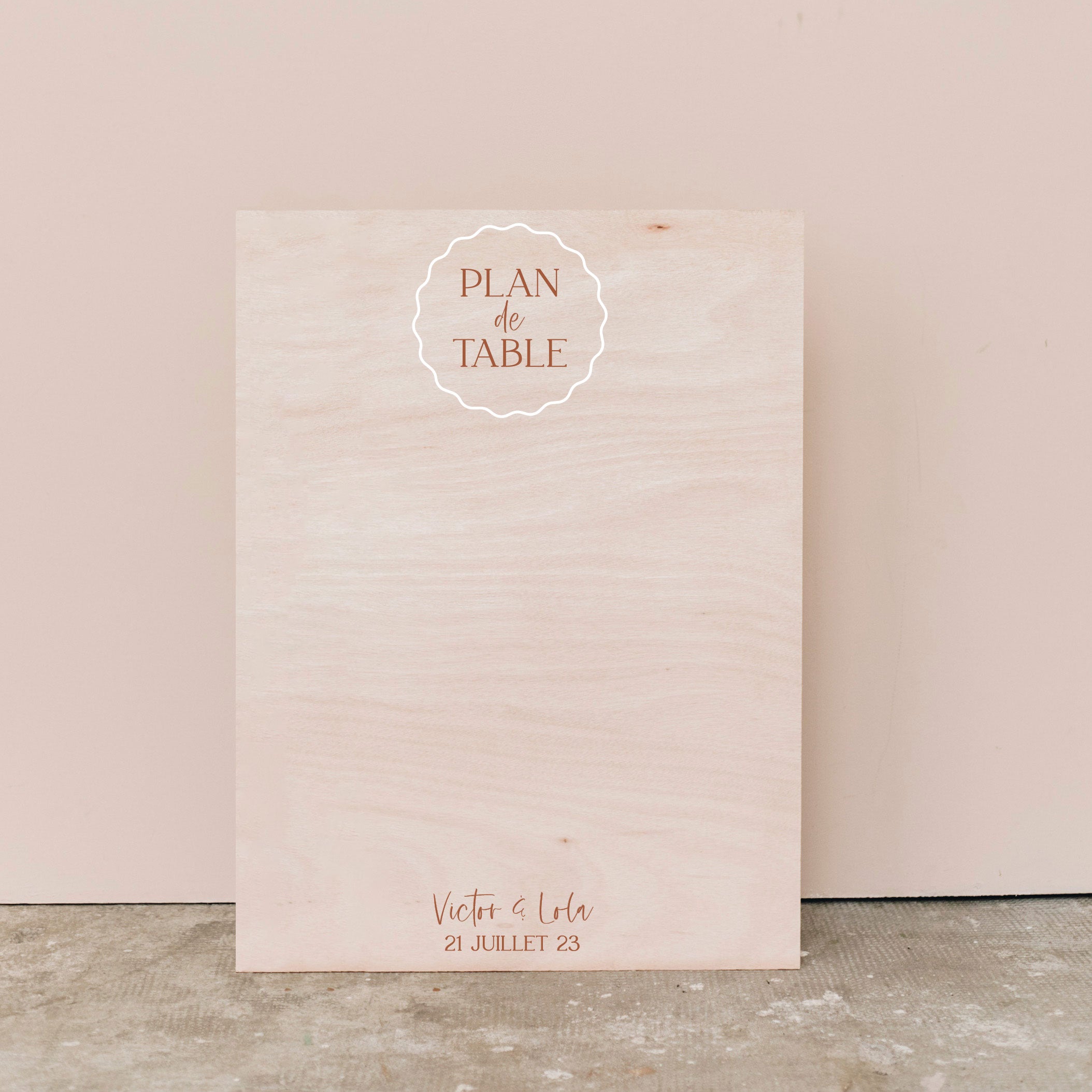 Découvrez notre plan de table en bois imprimé "Curve" à compléter. Imaginé par les Mignonneries, et à personnaliser avec vos propres fiches invités, il est entièrement créé dans notre atelier.