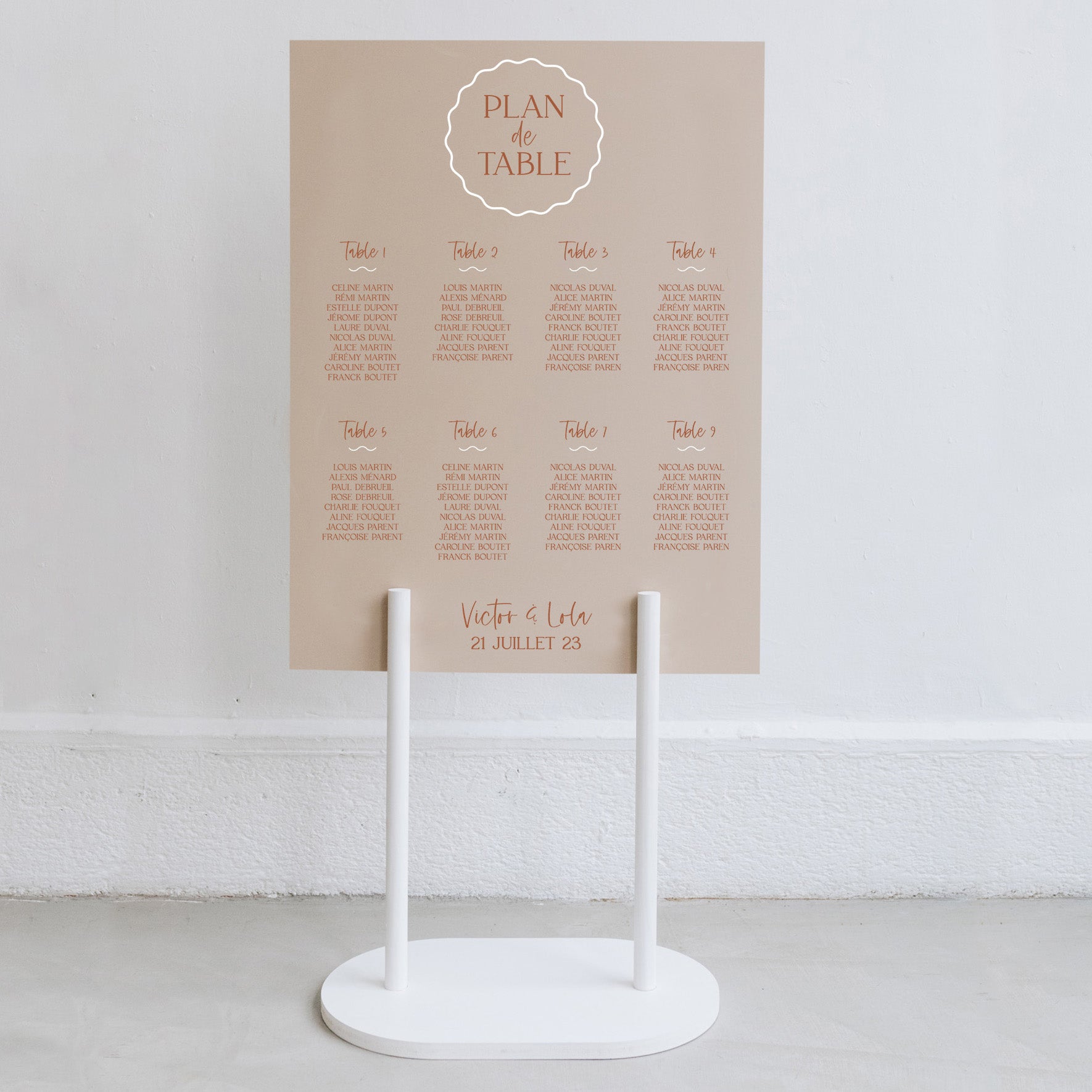Découvrez notre plan de table en plexi nude imprimé "Curve". Imaginé par les Mignonneries, et à personnaliser avec les prénoms de vos invités, il est entièrement créé dans notre atelier.