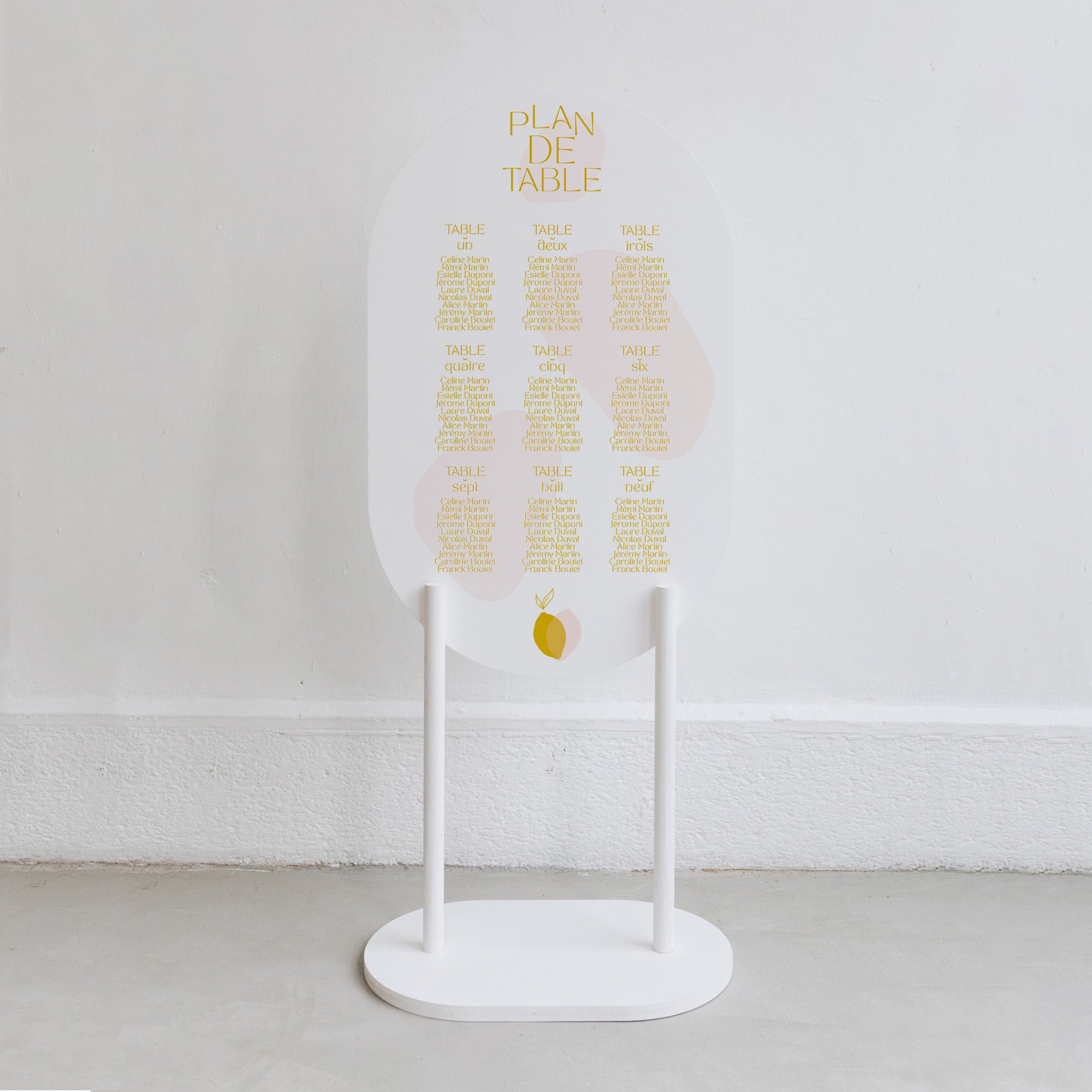 Découvrez notre plan de table en plexi blanc mat imprimé "Dolce". Imaginé par les Mignonneries, et à personnaliser avec les prénoms de vos invités, il est entièrement créé dans notre atelier.