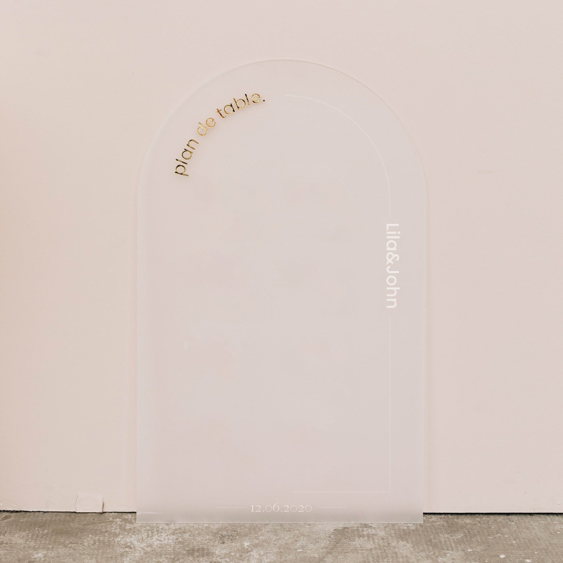 Découvrez notre plan de table en bois ou plexi givré Dot. Imaginé par les Mignonneries, et à personnaliser avec vos propres fiches invités, il est entièrement créé dans notre atelier.
