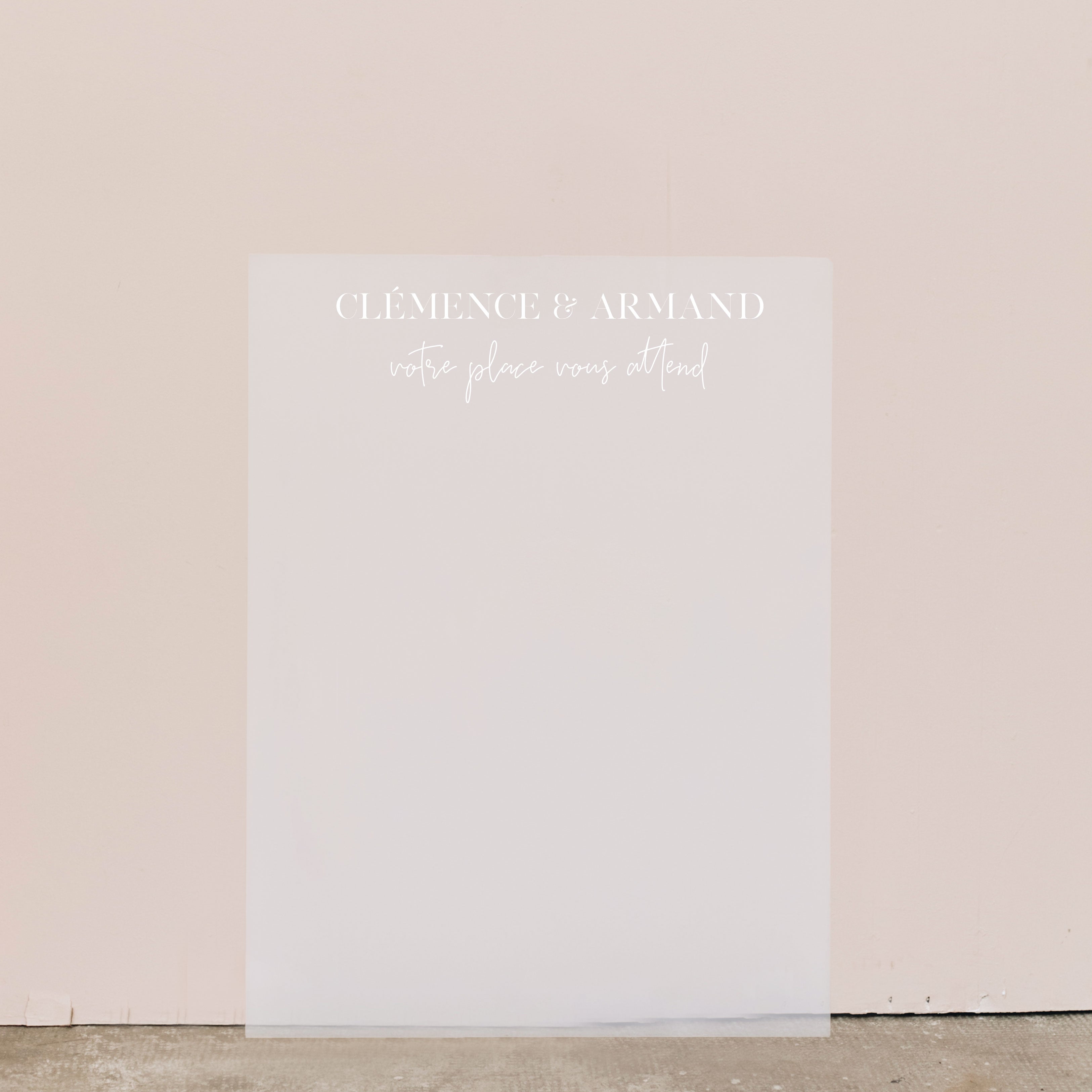 Découvrez notre plan en plexi givré Frost. Imaginé par les Mignonneries, et à personnaliser avec vod propre fiches invités, il est entièrement créé dans notre atelier.