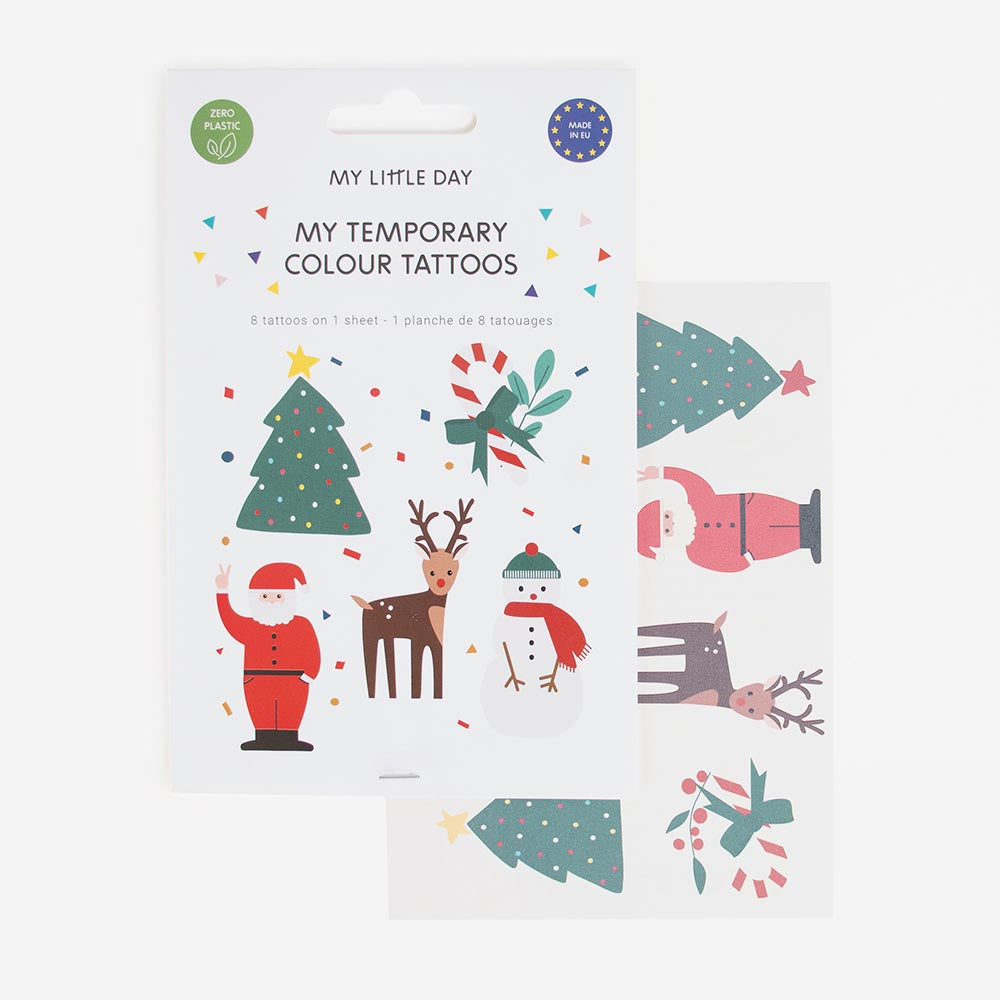 Ho ho ho ! Vous souhaitez organiser un repas de Réveillon de Noël en famille ou entre amis ? Notre collection de Noël est parfaite pour les fêtes de fin d'année ! Une planche de 8 tatouages de Noël à découper, parfaits pour un cadeau de Noël ou pour les pochettes surprise du calendrier de l'Avent.