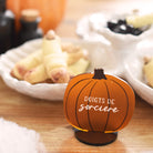 Une jolie signalétique en plexiglass givré orange en forme de citrouille, idéale pour décorer votre table ou buffet à votre soirée d’Halloween. Elle est entièrement créé dans notre atelier avec une illustration imaginée par Les Mignonneries. Profitez d’une création unique pour parfaire votre décoration.