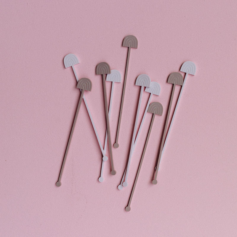 Découvrez les touillettes Arc-en-ciel. De jolis mélangeurs imaginés par Les Mignonneries à offrir à vos petits invités. Fabriquées à partir de plexiglass mat, elles sont coupées dans notre atelier. Vous pourrez faire votre choix parmi 3 coloris de plexi.