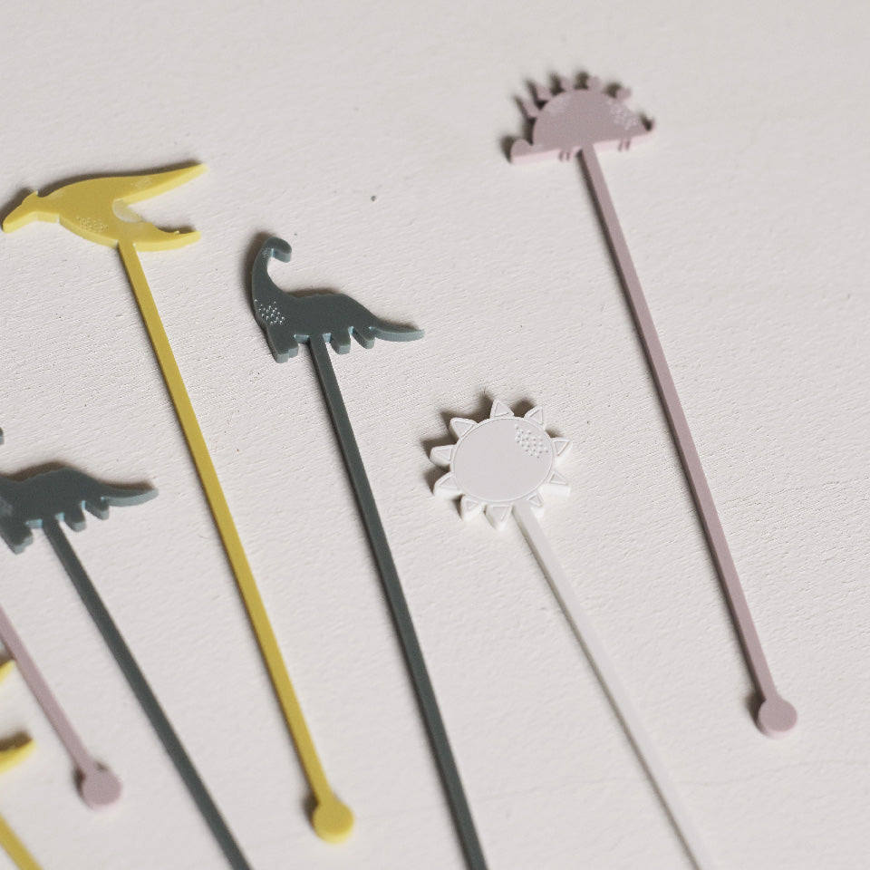 Ces touillettes font partie de notre collection Dino. Cette collection en bois et plexi plaira à vos enfants pour son côté ludique et amusant. Nous avons imaginé de jolis accessoires pour la décoration de vos fêtes d'anniversaires, baptême ou table des enfants lors de votre mariage.