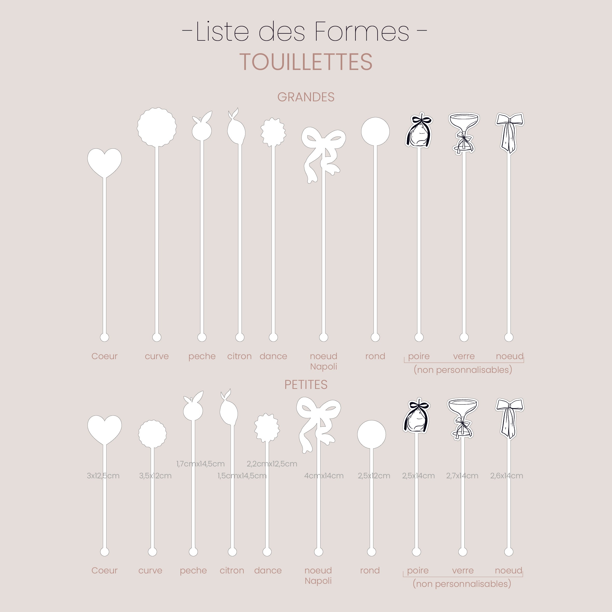 Découvrez nos touillettes sur mesure. Conçues par les Mignonneries et fabriquées dans le matériau de votre choix.