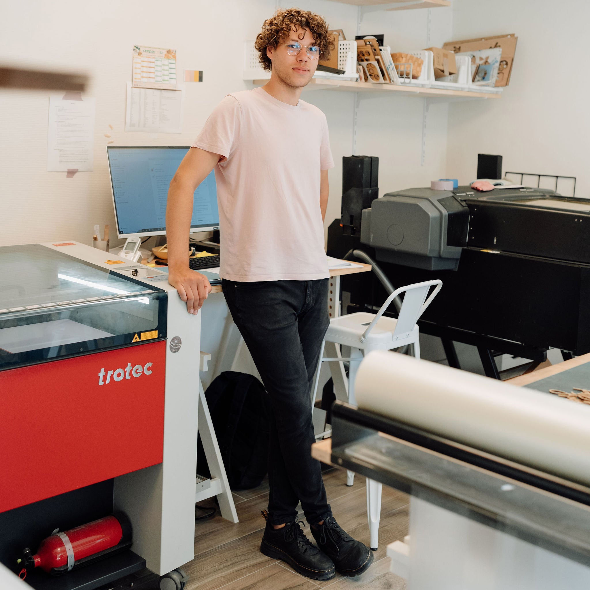 C'est le moment de trouver un atelier, et de quitter le FabLab dans lequel tout était fabriqué jusqu'à présent. Fin 2018, ils s'installent au Mesnil-le-Roi avec les deux premières machines : une découpe laser et un plotter. Les colis par terre, le ponçage dans le bureau... C'est un peu petit mais l'envie est là, et les nouvelles collections voient le jour. La nouvelle identité visuelle est créée et le nouveau site, est mis en ligne.