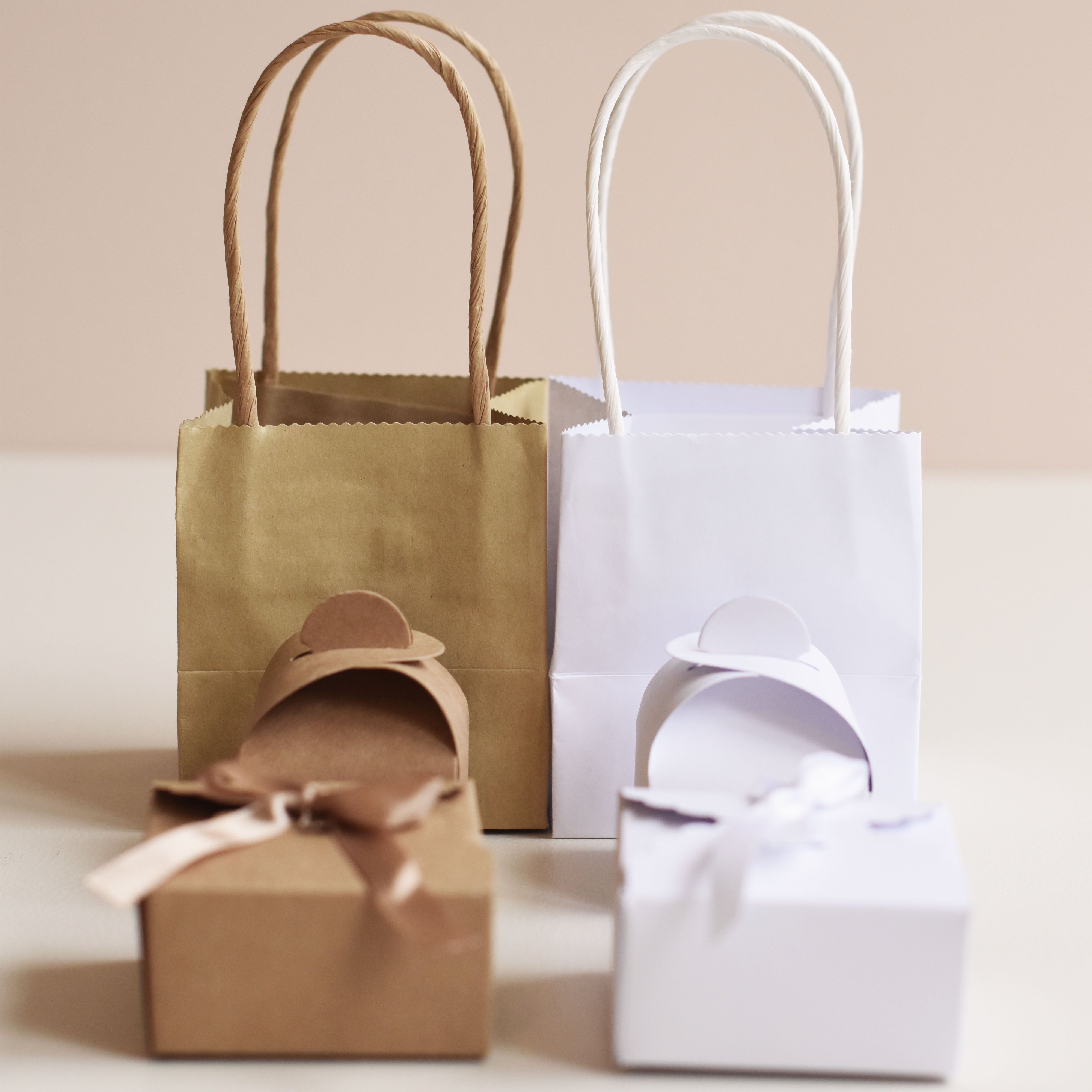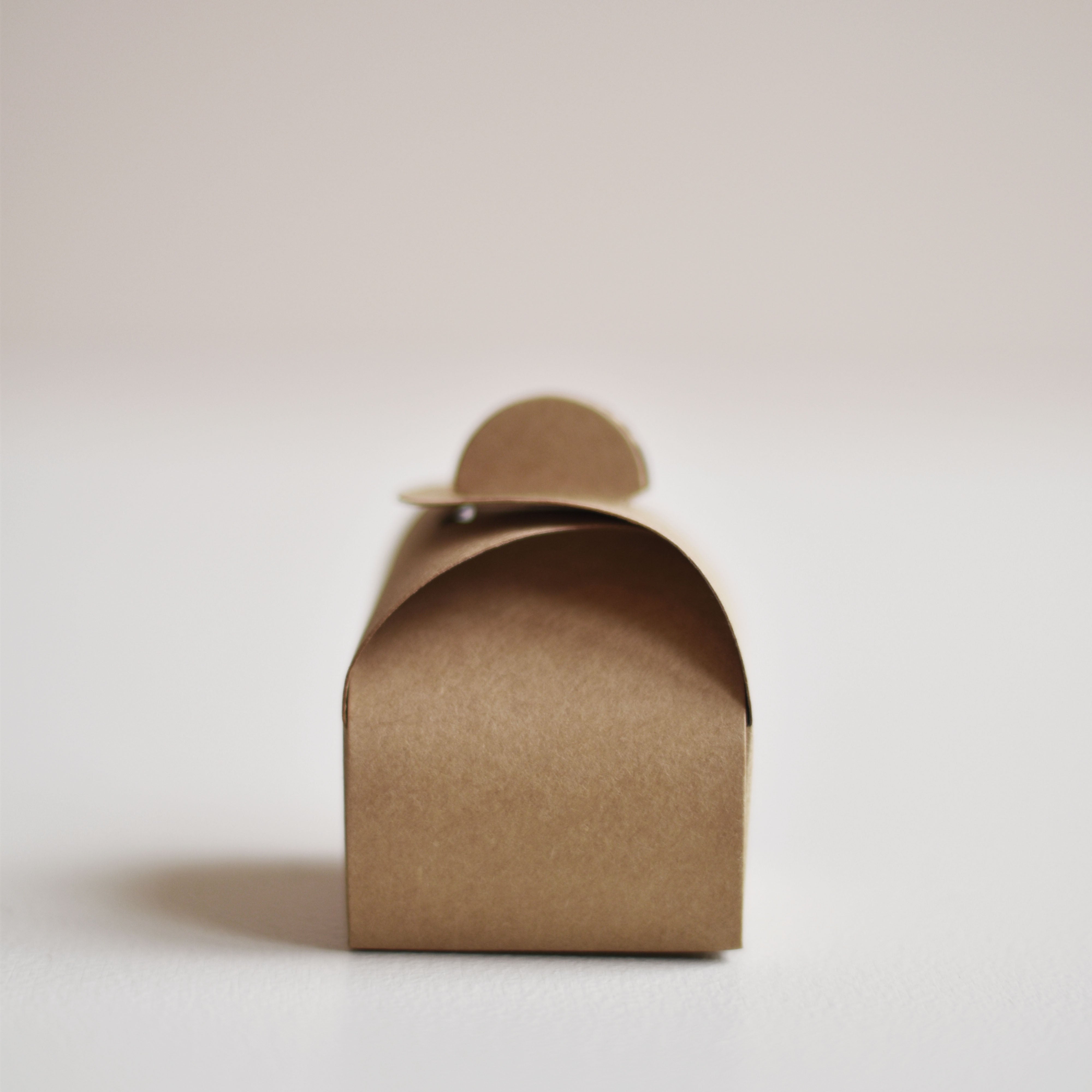Petite boîte arrondie kraft, proposée par les Mignonneries et à personnaliser avec nos étiquettes personnalisées.