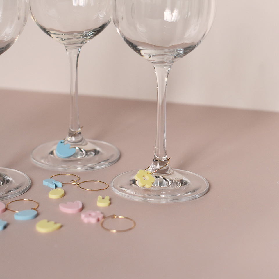 À glisser autour du pied du verre, ces marque-verres permettent d’identifier facilement sa boisson tout en apportant une touche décorative à la table.
