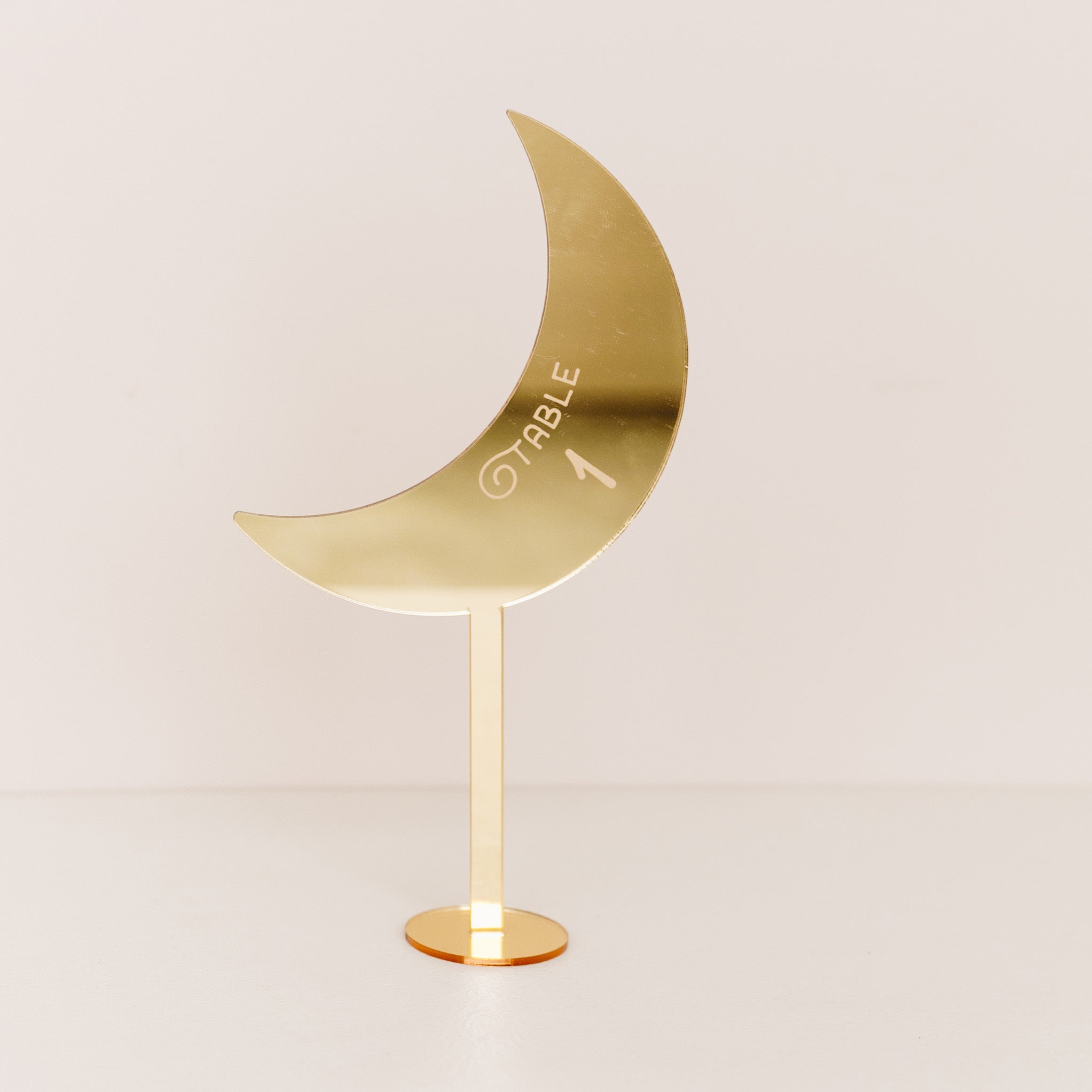 Découvrez les noms de table personnalisés en plexi miroir Lune. Des noms de tables coupés et gravés par Les Mignonneries à personnaliser avec vos propres termes.