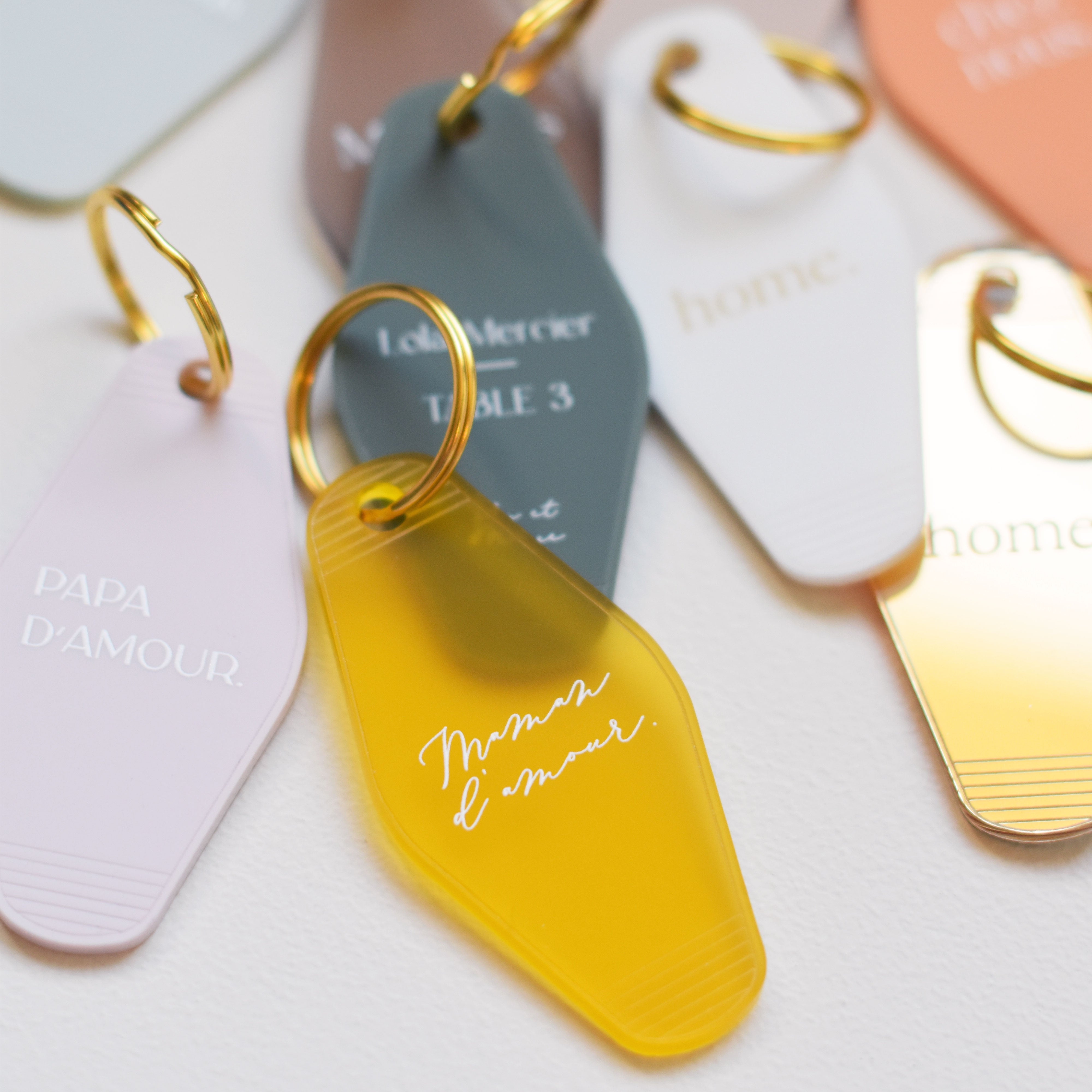 Découvrez nos jolis porte-clés "Motel". Imaginés par Les Mignonneries et fabriqués dans le matériau de votre choix.